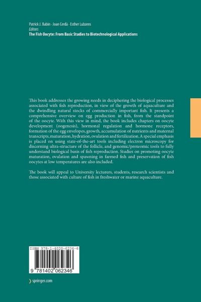 This book addresses the growing needs in deciphering the biological processes associated with fish reproduction, in view of the growth of aquaculture and the dwindling natural stocks of commercially important fish. It presents a comprehensive overview on egg production in fish, from the standpoint of the oocyte. With this view in mind, the book includes chapters on oocyte development (oogenesis), hormonal regulation and hormone receptors, formation of the egg envelopes, growth, accumulation of nutrients and maternal transcripts, maturation, hydration, ovulation and fertilization. A special emphasis is placed on using state-of-the-art tools including electron microscopy for discerning the ultra-structure of the follicle and genomic/proteomic tools to fully understand biological basis of fish reproduction. Studies on promoting oocyte maturation, ovulation and spawning in farmed fish and preservation of fish oocytes at low temperatures are also included.