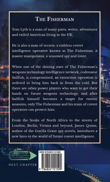 Tom Lyth is a man of many parts; writer, adventurer and exiled American living in the UK. He is also a man of secrets: a ruthless covert intelligence operative known as The Fisherman. A master manipulator, a seasoned spy and lover. When one of the shining stars of The Fisherman's weapons technology intelligence network, codename Sailfish, is compromised, an extraction operation is ordered to bring him back in from the cold. But there are other power players who want to get their hands on future weapons technology, and after Sailfish himself becomes a target for enemy assassins, only The Fisherman and his team of covert operators can protect him. From the Souks of North Africa to the streets of London, Berlin, Vienna and beyond, James Quinn, author of the Gorilla Grant spy novels, introduces a new hero to the world of future covert intelligence.