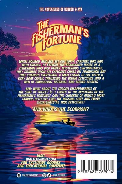When siblings Boubou and Aya set out for a carefree bike ride with friends to explore the abandoned house of a fisherman who died under mysterious circumstances, they stumble upon an explosive chase on Zinguichou Bay that changes everything. A man clings to life after a fiery boat crash, thrusting the young detectives into a web of smuggling, betrayal, and buried secrets. And what about the sudden disappearance of the chief of police? Is it linked to the mysteries of the fisherman's fortune? Can the children of Africa's most famous detective find the missing chief and prove their skills as true detectives? And who is the Scorpion? Follow Boubou and Aya in this gripping sequel as they confront treacherous waters and the whispers of the past, racing against time to solve their most challenging case yet. So, get this: Boubou and Aya Diouf are back, and what starts as a simple bike ride with friends turns into their most thrilling adventure yet. They stumble upon the abandoned house of a fisherman who died under mysterious circumstances and witness an explosive boat chase on Zinguichou Bay. The stakes skyrocket when they rescue a man from a fiery boat crash, plunging them into a web of smuggling, betrayal, and hidden treasures. Now, the plot thickens: the chief of police has vanished without a trace. Is his disappearance linked to the secrets of the fisherman's fortune? And who is the elusive criminal known as Scorpion? Following a trail of cryptic clues, Boubou and Aya discover a secret cave hidden in the cliffs-a hideout tied to an old case their father once worked on. With ruthless criminals on their trail and their clairvoyant grandmother's psychic visions guiding them, the siblings must unravel the mystery before it's too late. "The Fisherman's Fortune" isn't just about solving a mystery. It's a tale of bravery, the power of family bonds, and a touch of the supernatural. Join Boubou and Aya in this gripping sequel as they confront hidden dangers and race against time to solve their most challenging case yet. You're in for one heck of a ride!
