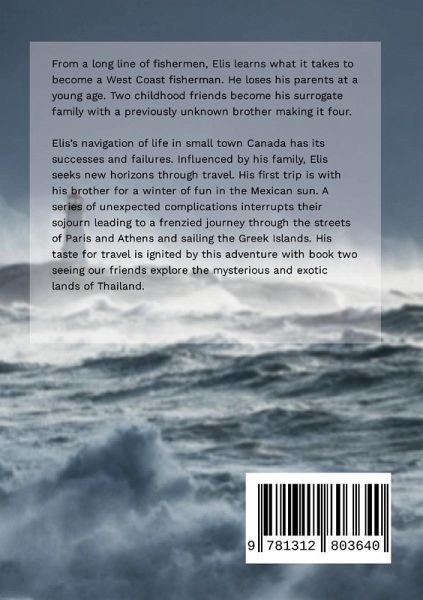 From a long line of fishermen, Elis learns what it takes to become a West Coast fisherman. He loses his parents at a young age. Two childhood friends become his surrogate family with a previously unknown brother making it four. Elis's navigation of life in small town Canada has its successes and failures. Influenced by his surrogate family, Elis seeks new horizons through travel. His first trip is with his brother for a winter of fun in the Mexican sun. A series of unexpected complications interrupts their sojourn leading to a frenzied journey through the streets of Paris and Athens and sailing the Greek Islands. His taste for travel is ignited by this adventure with book two seeing our friends explore the mysterious and exotic lands of Thailand.