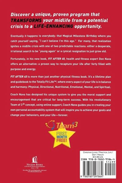 Professional Fitness Coach Don Nava presents a fun and unique program that enables every person to achieve a totally fit life. The 3 UNIQUE components of this program-The Team of 3; Dictums; and the Ten-Week Cycles of active follow-through-are a powerful combination that will help readers to have and sustain wholeness.