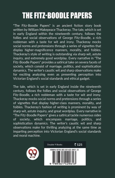"The Fitz-Boodle Papers" is an ancient fiction story book written by William Makepeace Thackeray. The tale, which is set in early England within the nineteenth century, follows the follies and social observations of George Fitz-Boodle, a rich nobleman with a taste for wit and irony. Thackeray mocks social norms and pretensions through a series of vignettes that display higher-magnificence manners, morality, and foibles. Thackeray's style of writing is outstanding via sharp wit, astute inquiry, and extremely good wordplay. Every narrative in "The Fitz-Boodle Papers" provides a satirical take on severa facets of society, which consist of marriage, politics, and sophistication dynamics. The writer's caustic wit and sharp observations make for exciting analyzing even as presenting perception into Victorian England's social standards and ethical gadget. The tale, which is set in early England inside the nineteenth century, follows the follies and social observations of George Fitz-Boodle, a rich nobleman with a taste for wit and irony. Thackeray mocks social norms and pretensions through a series of vignettes that display higher-class manners, morality, and foibles. Thackeray's fashion of writing is prominent by way of sharp wit, astute inquiry, and great wordplay. Every narrative in "The Fitz-Boodle Papers" gives a satirical tackle numerous sides of society, which encompass marriage, politics, and sophistication dynamics. The writer's caustic wit and sharp observations make for thrilling analyzing at the same time as imparting perception into Victorian England's social standards and moral machine.