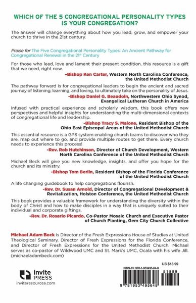 Can churches in the 21st century stop, reverse, or prevent decline - and even become healthy, thriving congregations? Missional innovator, pastor, and church renovator, Michael Beck, says they can. But the old cookie cutter ways of doing church won't cut it in today's world. If churches are going to stop the shocking rates of pastoral burnout and exodus from the pews, they must understand that every church has a distinct personality type, which can keep it stuck or propel it into maturity, depending on how it's used. Now, for the first time in history, you can understand and leverage your congregation's culture and personality using the groundbreaking 5 Congregational Personality Types(TM) model. Based on proven methods from psychology and ministry archetypes in Scripture, The Five Congregational Personality Types will help you unearth:Which of the five congregational personality types your church is Your congregation's unique culture and how to nurture your church's strengths The "shadow side," or weak point, of your congregation's personality type - and how you can transform this into a strength Your #1 strategy for growth and clear next steps to take Get The Five Congregational Personality Types and discover exactly what to do next to grow your church in the 21st century.