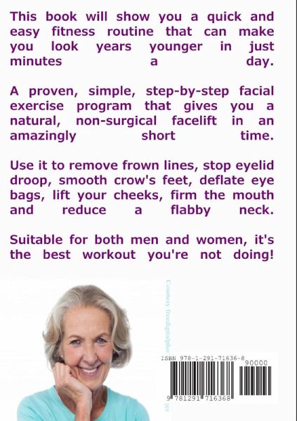 How Five Minutes of Simple Exercises Once a Day Could Make You Look Ten Years Younger. This book will show you a quick and easy fitness routine that can make you look years younger in just minutes a day. A proven, simple, step-by-step facial exercise program that gives you a natural, non-surgical facelift in an amazingly short time. Use it to remove frown lines, stop eyelid droop, smooth crow's feet, deflate eye bags, lift your cheeks, firm the mouth and reduce a flabby neck. Suitable for both men and women, it's the best workout you're not doing! Also included: A comprehensive anti-aging guide that gives health, beauty and diet tips that will age-proof your body and keep you looking young and feeling fit in your 50's, 60's, 70's and beyond.