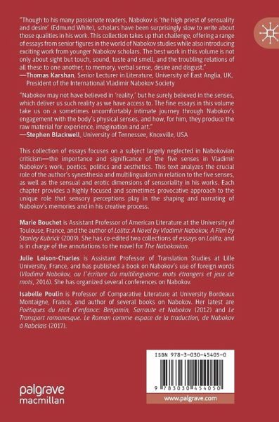 This collection of essays focuses on a subject largely neglected in Nabokovian criticism-the importance and significance of the five senses in Vladimir Nabokov's work, poetics, politics and aesthetics. This text analyzes the crucial role of the author's synesthesia and multilingualism in relation to the five senses, as well as the sensual and erotic dimensions of sensoriality in his works. Each chapter provides a highly focused and sometimes provocative approach to the unique role that sensory perceptions play in the shaping and narrating of Nabokov's memories and in his creative process.
