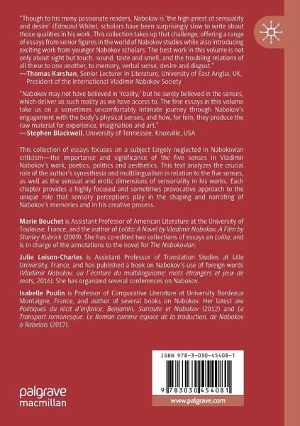 This collection of essays focuses on a subject largely neglected in Nabokovian criticism-the importance and significance of the five senses in Vladimir Nabokov's work, poetics, politics and aesthetics. This text analyzes the crucial role of the author's synesthesia and multilingualism in relation to the five senses, as well as the sensual and erotic dimensions of sensoriality in his works. Each chapter provides a highly focused and sometimes provocative approach to the unique role that sensory perceptions play in the shaping and narrating of Nabokov's memories and in his creative process.