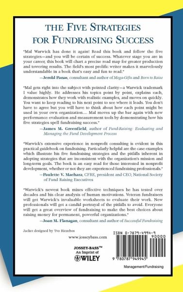 "Mal gets right into the subject with pointed clarity--a Warwicktrademark I value highly. He addresses his topics point by point,explains each, demonstrates how they work with realistic examples,and moves on quickly. You want to keep reading to his next point tosee where it leads. You don't have to agree but you will have tothink about how each point might be used in your ownorganization.... Mal moves up the bar again with new performanceevaluation and measurement tools by demonstrating how his fivestrategies spell fundraising success." (James M. Greenfield, authorof Fund-Raising: Evaluating and Managing the Fund DevelopmentProcess)
