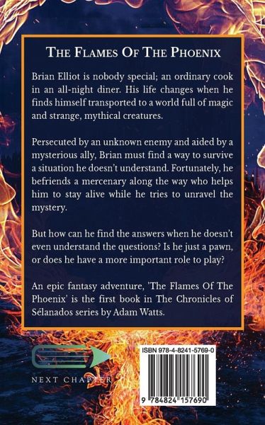 Brian Elliot is nobody special; an ordinary cook in an all-night diner. His life changes when he finds himself transported to a world full of magic and strange, mythical creatures. Persecuted by an unknown enemy and aided by a mysterious ally, Brian must find a way to survive a situation he doesn't understand. Fortunately, he befriends a mercenary along the way who helps him to stay alive while he tries to unravel the mystery. But how can he find the answers when he doesn't even understand the questions? Is he just a pawn, or does he have a more important role to play? An epic fantasy adventure, 'The Flames Of The Phoenix' is the first book in The Chronicles of Sélanados series by Adam Watts.
