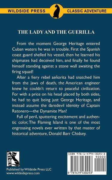From the moment George Heritage entered Cuban waters he was in trouble. First the Spanish coast guard shelled his vessel, then he learned his shipmates had deceived him, and finally he found himself standing against a stone wall awaiting the firing squad! After a fiery rebel señorita had snatched him from the jaws of death, the American engineer knew he couldn't return to peaceful civilization. For with a price on his head placed by both sides, he had to quit being just George Heritage, and instead assume the daredevil identity of Captain Ratonero -- the Dynamite Man! Full of peril, sputtering excitement and authentic color, "The Flaming Island" is one of the most engrossing novels ever written by that master of historical adventure, Donald Barr Chidsey.