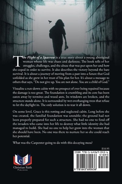 The Flight of a Sparrow is a true story about a young aboriginal woman whose life was chaos and darkness. The book tells of her struggles, challenges, and the abuse that was put upon her and how she coped in order to survive. It also describes the victory beyond the bare survival. It is about a journey of moving from a past into a future that God unfolded as she grew in her trust of his plan for her. It's about a message to others that says, "Do not give up. You are not alone. You are a child of God." Visualize a run-down cabin with no prospect of ever being repaired because the damage is too great. The foundation is crumbling and its core has been eaten away by termites and wood ants. Its windows are broken, and the structure stands alone. It is surrounded by wet overhanging trees that refuse to let the daylight in. The only solution is to tear it all down. On some level, Grace is this rotting and neglected cabin. Long before she was created, the familial foundation was unstable; the ground had not been properly prepared for such a structure. She had no one to fend off the invaders who came into her life to destroy what little identity she had managed to build. She had no one to help her grow into the woman that she should have been. No one was there to nurture her so she could reach her potential. What was the Carpenter going to do with this decaying mess?