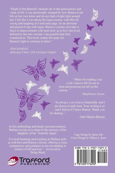 The Flight of our Butterfly is a mothers heartfelt celebration of her daughters short life on earth. Our hero, Bianca Jovan, was diagnosed at the age of 19 with an aggressive form of Lupus while in her first year of college. This book brings you into the trials and tribulations of Biancas life through a series of inspirational short stories from her mothers personal handwritten journal. Each chapter tells the story of their relationship, their struggles and their triumphs through small notes and anecdotal observations of love and affection only a mother can have. Their journey takes you back into time as if you were right there enjoying these moments with them. Some funny, some enlightening, and some serious, its a firsthand view into raising a young lady in todays world. Bianca passed away 9 years after the last entry in her mothers journal. The notes following are raw emotional peeks into a mothers resolve after the loss of her child.