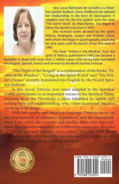 "The Flight of the Seagull" is a continuation of the books "Violets at the Window", "Living in the Spirit World" and "The Writer's House" recently translated into English by the World Spiritist Institute. In this novel, Patrícia, now more adapted to the Spiritual world, participates in an important rescue on the Spiritual Plane: rescuing from the Threshold, a place inhabited by spirits still lacking light and understanding, who, when incarnated, became involved with drugs. With her simple and attractive language, Patrícia shows us the consequences of substance dependency and the disenchantment it provokes; she consoles and clarifies those who have suffered disappointments and find it difficult to overcome the pain. In the spiritual author's own words, "to work with love, overcoming our obligations, for our sake and that of others, and more, without expecting anything in return".