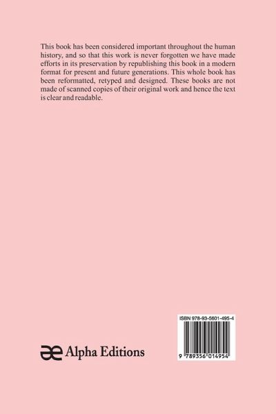 This book has been considered important throughout the human history, and so that this work is never forgotten we have made efforts in its preservation by republishing this book in a modern format for present and future generations. This whole book has been reformatted, retyped and designed. These books are not made of scanned copies and hence the text is clear and readable.