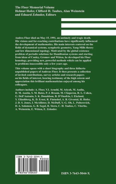 Andreas Floer died on May 15, 1991 an untimely and tragic death. His visions and far-reaching contributions have significantly influenced the developments of mathematics. His main interests centered on the fields of dynamical systems, symplectic geometry, Yang-Mills theory and low dimensional topology. Motivated by the global existence problem of periodic solutions for Hamiltonian systems and starting from ideas of Conley, Gromov and Witten, he developed his Floer homology, providing new, powerful methods which can be applied to problems inaccessible only a few years ago. This volume opens with a short biography and three hitherto unpublished papers of Andreas Floer. It then presents a collection of invited contributions, and survey articles as well as research papers on his fields of interest, bearing testimony of the high esteem and appreciation this brilliant mathematician enjoyed among his colleagues. Authors include: A. Floer, V.I. Arnold, M. Atiyah, M. Audin, D.M. Austin, S.M. Bates, P.J. Braam, M. Chaperon, R.L. Cohen, G. Dell' Antonio, S.K. Donaldson, B. D'Onofrio, I. Ekeland, Y. Eliashberg, K.D. Ernst, R. Finthushel, A.B. Givental, H. Hofer, J.D.S. Jones, I. McAllister, D. McDuff, Y.-G. Oh, L. Polterovich, D.A. Salamon, G.B. Segal, R. Stern, C.H. Taubes, C. Viterbo, A. Weinstein, E. Witten, E. Zehnder