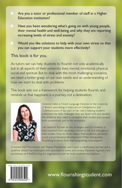 Fabienne Vailes is Language Director at the University of Bristol, specialising in teaching French Language and Intercultural Competence and Communication. A key part of her role is helping students overcome the daily challenges they are faced with and develop the resilience they need to complete their studies and succeed both academically and in the workplace. With almost 20 years' experience in the educational sector, Fabienne has taught all age groups from nursery to primary, secondary, FE and HE as well as adult learners. A trained NLP Practitioner and Master Practitioner and Coach, Mindfulness teacher and qualified clinical hypnotherapist with specialism in stress and anxiety, Fabienne is also a professional member of the ANLP and Mindfulness Association. Through her company Flourishing Education she regularly runs workshops for both corporate and academic clients.