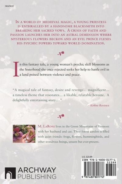 " In a world of medieval magic, a young priestess is enthralled by a handsome blacksmith into breaking her sacred vows. A crisis of faith and passion launches her into an astral dimension where mysterious flowers beckon and an evil prince flexes his psychic powers toward world domination. In this fantasy tale, a young woman¿s psychic skill blossoms as the Sisterhood she once rejected seeks her help to battle evil in a land poised between violence and peace. ""A magical tale of fantasy, desire and revenge . . . magnificent . . . a timeless theme that resonates . . . a likable, relatable heroine. A delightfully entertaining story . . . ."" ¿ Kirkus Reviews "