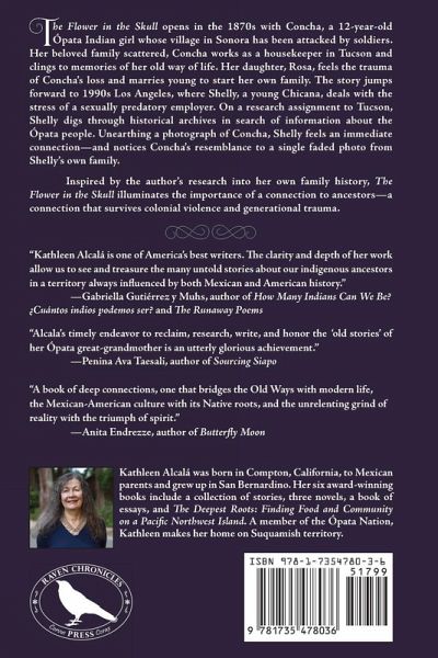 A riveting novel from acclaimed author Kathleen Alcalá, this second edition of The Flower in the Skull, from Raven Chronicles Press, begins in the Sonoran Desert in the late 19th century, where an Ópata village is attacked by Mexican soldiers. Her family scattered, Concha makes her way to Tucson, where the stories she tells her daughter lead to Shelly-a troubled Latina in modern-day Los Angeles, increasingly fascinated by her ancestry. A powerful tale of heritage, loss, and acculturation, Alcalá spins her most lyrical and moving work yet. The Flower in the Skull stands perfectly apart even as it continues the epic begun with Spirits of the Ordinary. The second part of a planned trilogy that began with Spirits of the Ordinary (1997), The Flower in the Skull spans more than a century in offering a view of three women linked by Indian blood and their dreams, and seared by the violent transgressions of men. Childhood comforts in her Ópata village in Sonoran Mexico cease for Concha when her father is seized by Mexican soldiers and never seen again. First abandoning home with the remainder of her family, then herself abandoned by her mother, Concha walks in a daze across the desert to Tucson, where she's taken in as a nanny by a prospering Mexican family. A measure of peace returns to her. But when she's raped by an Anglo and bears his child, nothing can ever be the same. A brief marriage to the family doctor fails to produce more children, so her husband abandons her for someone else, leaving Concha and daughter Rosa to fend for themselves. ¿¿Over the years, Rosa picks up the burden when her mother grows too weak to continue the dawn-to-dusk housecleaning work that has sustained them, but then Rosa catches the eye of a young minister and receives Concha's blessing to marry him just before Concha dies. Busy starting her own family and keeping her own house, Rosa still wonders about her mother's past-Ópata and the father she never knew. Two generations forward, Shelly, an editorial assistant for an L.A. publisher, jumps at the chance to escape her stalking, harassing boss by going on a research trip to Tucson, where she finds not only a mystery involving her mother's family and her people in a broader sense, but also the will to survive the horror waiting for her when she returns to Los Angeles. ¿Like her previous novel Spirits of the Ordinary, The Flower in the Skull is set along the Mexican/U.S. border and deals with three generations of Ópata Indian women--ranging from the turn of the century to the present day. All are based on members of Kathleen's family, the book recreating both the magic and hard work of survival. The story is heartbreaking in places, but the prose is even more gorgeous, and there is a richness to Alcalá's characterization and settings that invite re-reading passages, simply to re-experience their resonance. This book is not to be missed, especially by students of Native American Studies, border studies, and American history.