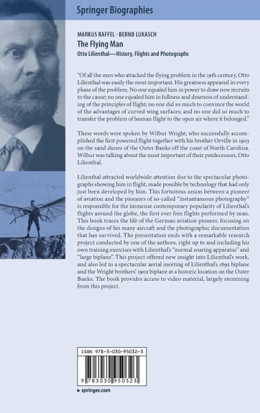 Lilienthal attracted worldwide attention due to the spectacular photographs showing him in flight, made possible by technology that had only just been developed by him. This fortuitousunion between a pioneer of aviation and the pioneers of so-called "instantaneous photography" is responsible for the immense contemporary popularity of Lilienthal's flights around the globe, the first ever free flights performed by man. This book traces the life of the German aviation pioneer, focusing on the designs of his many aircraft and the photographic documentation that has survived. The presentation ends with a remarkable research project conducted by one of the authors, right up to and including his own training exercises with Lilienthal's "normal soaring apparatus" and "large biplane". This project offered new insight into Lilienthal's work, and also led to a spectacular aerial meeting of Lilienthal's 1895 biplane and the Wright brothers' 1902 biplane at a historic location on the Outer Banks. The book provides access to video material, largely stemming from this project.