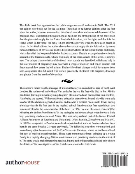 The author's father was the manager of a biscuit factory in an industrial area of north west London. He had served in the Great War, and after the war his first wife died in the 1919 flu pandemic, leaving him with a young daughter. He remarried and had another four children, Alan being the second. With scant formal education themselves, he and his wife were able to offer all the children a good education, and to Alan a medical one as well. It was during a biology class in his first year in the medical school that the author first heard about two streams of blood in the same chamber of the heart. In 1956, 'by a set of curious chances' (The Mikado), the author found himself in the setting he had dreamt about when he was a little boy: practising medicine in rural Africa. This was in Nyasaland, part of the former Central African Federation of Rhodesia and Nyasaland. (Now Zambia, Zimbabwe and Malawi). In 1962 he was posted to Zomba as medical superintendent and met Pauline who had been born in the same hospital 21 years previously. The following year they were married, and immediately after the reception left for Fort Victoria in Rhodesia, where he had been offered the post of medical superintendent. Those were momentous times: bringing up a young family in a rapidly changing African environment and practising medicine in the midst of it. The story would make interesting reading, but the author has put it aside and only shown the details of his investigations of the foetal circulation in his little book.