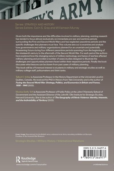 How do we plan under conditions of uncertainty? The perspective of military planners is a key organizing framework: do they see themselves as preparing to administer a peace, or preparing to fight a future war? Most interwar volumes examine only the 1920s and the 1930s. This new volume goes back, and forward in time, to draw on a greater expanse of history in order to tease out lessons for contemporary planners. These chapters are grouped into four periods: 1815-1856, 1871-1914, 1918-1938, and post-Second World War. They progress from low-tech to high-tech concerns, for example, the first period examines armies, while the second period examines navies, the third asseses navies combined with air forces, and finally for the Kaiser chapter explores nuclear issues and decision-making.