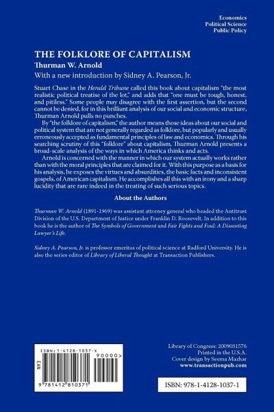Stuart Chase in the Herald Tribune called this book about capitalism "the most realistic political treatise of the lot" and adds that "one must be tough and pitiless honesty and pitiless humanity." Some people may disagree with the fi rst assertion, but the second cannot be denied, for in this brilliant analysis of our social and economic structure Thurman Arnold pulls no punches. By "the folklore of capitalism" the author means those ideas about our social and political system that are not generally regarded as folklore but popularly and usually erroneously accepted as fundamental principles of law and economics. Th rough his searching scrutiny of this "folklore" about capitalism, Th urman Arnold presents a broad scale analysis of the ways in which America thinks and acts. Arnold is concerned with the manner in which our system actually works rather than with the moral principles that are claimed for it. With this purpose as a basis for his analysis, he exposes the virtues and absurdities, the basic facts and inconsistent gospels of American capitalism. He accomplishes all this with an irony and a sharp lucidity that are rare indeed in the treating of such serious topics.