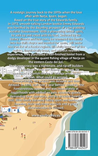 A nostalgic journey back to the 1970s when the love affair with Nerja, Spain, began. Based on the true story of the Edwards family. In 1972, smooth-talking London bookie Jimmy Edwards was horrified by the daunting prospect of a tax-grabbing Socialist Government. With a pioneering British spirit, he sold up and voted with his feet. Seduced by the balmy climate and low costs, he crammed the family into the Rolls Royce and headed for Spain, still under the iron fist of a Fascist regime. Blissfully ignorant of the politics, linguistically inept, and without relevant experience, they purchased a half-finished hostel from a dodgy developer in the quaint fishing village of Nerja on the eastern Costa del Sol. The bureaucracy was a nightmare, and rip-off builders were laboriously slow. But Jimmy was smart. He appointed a Spanish lawyer in Málaga who spoke English. What could go wrong? Unsurprisingly, the project was delayed and then delayed. In 1974, well over a year behind schedule, the Fontainebleau opened and was immediately at loggerheads with oddball ex-pats, eccentric guests, demanding tour operators, and the dreaded Guardia Civil. With family harmony falling apart and bankruptcy looming, their only hope was luck and a gritty determination to succeed. Un nostálgico y apasionante viaje, basado en un hecho real, que tiene lugar en los años 70, cuando la familia Edwards sienten un "amor a primera vista" por el malagueño pueblo de Nerja. En 1972, un encantador y apuesto corredor de apuestas londinense Jimmy Edwards, decide marcharse tras el desalentador panorama político y los elevados impuestos del gobierno socialista de la época, para emprender una nueva vida en España. Con un espíritu intrépido y pionero, y seducido por el buen clima y el bajo nivel de vida de aquel entonces, llega a Málaga con su familia en el Rolls-Royce desde Reino Unido. Desconocedor de la política y bajo el régimen fascista, se enfrentaría con el desconocimiento lingüístico y a la ineptitud en cuanto a la inexperiencia en la hostelería. Pero nada de ello impidió la compra de un pequeño hotel en fase de construcción a un promotor de dudosa reputación en la localidad pesquera de Nerja en la Costa del Sol. Los trámites burocráticos y los constantes contratiempos con los tramposos constructores, obligan a el ingenioso Jimmy a contratar un abogado de habla inglesa en la capital de Málaga. Qué más podría salir mal? La inauguración se pospuso una y mil veces más, hasta que finalmente en 1974, año y medio más tarde de lo previsto, el Hostal Fontainebleau abrió sus puertas, y pronto se vio envuelto en una disputa entre expatriados y huéspedes excéntricos, turoperadores exigentes, y el temido cuerpo de la guardia civil. Con la armonía familiar desmoronándose y la quiebra al acecho, su única esperanza y propósito era tener un poquito de fortuna o una determinación perseverante para poder triunfar.