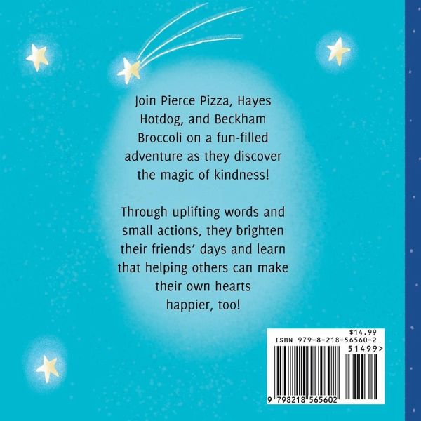 Pierce Pizza, Beckham Broccoli, and Hayes Hotdog are on a mission to spread smiles and cheer up their friends in need. Maxine Mango, Leo Lettuce, and Summer Strawberry are feeling down-but with clever ideas, thoughtful compliments, and a dash of teamwork, the Food Friends know just how to turn their day around! This delightful rhyming picture book teaches children the power of kindness, the importance of helping others, and the surprising joy it brings in return. Filled with vibrant illustrations, playful food characters, and a heartwarming message, The Food Friends: Making Someone Else's Day Will Make Yours Too is perfect for families, classrooms, and libraries. Aimed at children ages 1-10, this story inspires young readers to embrace empathy, build connections, and see the value in small acts of kindness. Whether it's at bedtime, story time, or as a gift, this book will leave kids smiling-and eager to make someone else's day!