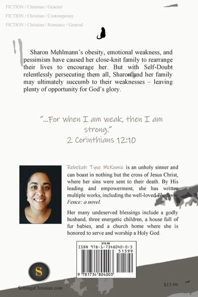 Sharon Mehlmann's obesity, emotional weakness, and pessimism have caused her close-knit family to rearrange their lives to encourage her. But with Self-Doubt relentlessly persecuting them all, Sharon and her family may ultimately succumb to their weaknesses - leaving plenty of opportunity for God's glory. "...For when I am weak, then I am strong." 2 Corinthians 12:10