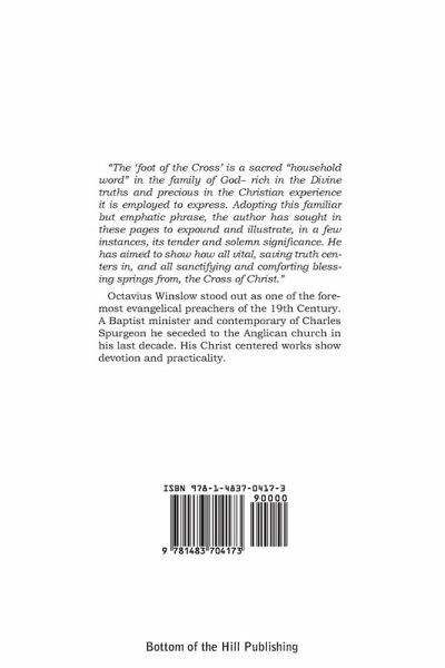 "The 'foot of the Cross' is a sacred "household word" in the family of God- rich in the Divine truths and precious in the Christian experience it is employed to express. Adopting this familiar but emphatic phrase, the author has sought in these pages to expound and illustrate, in a few instances, its tender and solemn significance. He has aimed to show how all vital, saving truth centers in, and all sanctifying and comforting blessing springs from, the Cross of Christ." Octavius Winslow stood out as one of the foremost evangelical preachers of the 19th Century. A Baptist minister and contemporary of Charles Spurgeon he seceded to the Anglican church in his last decade. His Christ centered works show devotion and practicality.