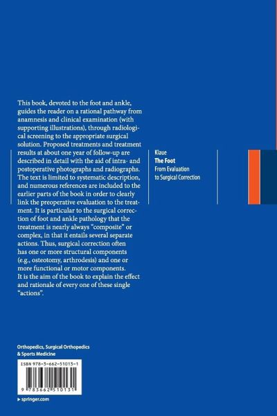 This book guides the reader on a rational pathway from anamnesis and clinical examination (with supporting illustrations), through radiological screening to the appropriate surgical solution. Proposed treatments and treatment results at about one year of follow-up are described in detail with the aid of intra- and postoperative photographs and radiographs. The text is limited to systematic description, and numerous references are included to the earlier parts of the book in order to clearly link the preoperative evaluation to the treatment. It is particular to the surgical correction of foot and ankle pathology that the treatment is nearly always "composite" or complex, in that it entails several separate actions. Thus, surgical correction often has one or more structural components (e.g., osteotomy, arthrodesis) and one or more functional or motor components. It is the aim of the book to explain the effect and rationale of every one of these single "actions".