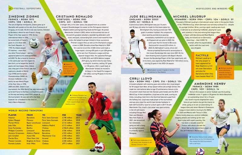 Discover the ultimate guide to the world of football with The Football Encyclopedia, featuring a fill-in World Cup 2026 results wallchart. Dive into the latest stats, information, and fascinating facts about the world's biggest sport. Explore profiles of star athletes including Jude Bellingham, Aitana Bonmatí, Erling Haaland, and Bukayo Saka. Track your favourite teams across top leagues including the Premier League, La Liga, Bundesliga, MLS, and more globally. Gain insights into legendary tournaments and competitions such as the FA Cup, Copa América, FIFA World Cup, and the Women's 2025 EUROs. This edition comes with brand new content on women's football, a rapidly growing sport globally, and is packed with vibrant photos and profiles of past and present superstars from Harry Kane and Mohamed Salah to Kylian Mbappé, Messi, Sam Kerr, and David Beckham. Examine over 50 iconic teams that have enhanced the game, including the England men's and women's teams, Brazil, Manchester City, Liverpool, and Real Madrid. Football enthusiasts will access essential details about major tournaments and leagues worldwide, like the English Premier League, UEFA Champions League, and EUROs. Relive the excitement of the beautiful game through dynamic images and artwork that captures iconic movements and goals. Enjoy comprehensive coverage of every football aspect, including rules, skills, fan culture, media, coaches, and tactics. Updated with the latest stats, this detailed reference book is perfect for every football fan.
