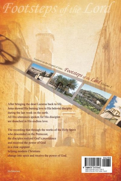 "After finishing the Passover meal and comforting the disciples and giving them several more lessons, Jesus began teaching about the work of the Holy Spirit. He told them that the Holy Spirit would come to convict and rebuke the world concerning sin, righteousness, and judgment." Footsteps of the Lord 2 is a book compiled from Dr. Jaerock Lee's series "Lectures on the Gospel of John"(from John chapter 11~21). The Lord's ministry, crucifixion, and resurrection are well explained in this book so that readers can be guided to the way of salvation, and receiving answers, love, and blessings.