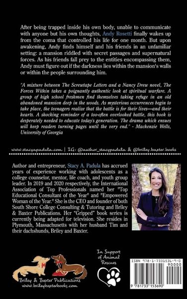 Stacy Padula has accrued years of experience working with teenagers as a college counselor, church youth group leader, and mentor. She is the owner of four businesses and the author of fifteen books. She was recently honored in Times Square on the iconic Reuters building as "Empowered Woman of the Year," named "Top Global Impact Author of the Year" by IAOTP, and "Woman of the Year" by The CIO Times. Her award-winning Gripped series is being adapted for television. She resides in Plymouth, Massachusetts with her husband, Tim, and their three miniature dachshunds, Baxter, Tony, and George. She writes in loving memory of her first dachshund, Briley, who passed away in 2024 at the incredible age of nineteen.