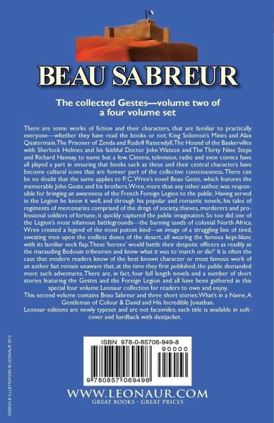 The collected Gestes-volume two of a four volume set There are some works of fiction and their characters, that are familiar to practically everyone-whether they have read the books or not; King Solomon's Mines and Alan Quatermain, The Prisoner of Zenda and Rudolf Rassendyll, The Hound of the Baskervilles with Sherlock Holmes and his faithful Doctor John Watson and The Thirty Nine Steps and Richard Hannay, to name but a few. Cinema, television, radio and even comics have all played a part in ensuring that books such as these and their central characters have become cultural icons that are forever part of the collective consciousness. There can be no doubt that the same applies to P. C. Wren's novel Beau Geste, which features the memorable John Geste and his brothers. Wren, more than any other author, was responsible for bringing an awareness of the French Foreign Legion to the public. Having served in the Legion he knew it well, and through his popular and romantic novels, his tales of regiments of mercenaries comprised of the dregs of society, thieves, murderers and professional soldiers of fortune, it quickly captured the public imagination. So too did one of the Legion's most infamous battlegrounds-the burning sands of colonial North Africa. Wren created a legend of the most potent kind-an image of a straggling line of tired, sweating men upon the endless dunes of the desert, all wearing the famous kepi-blanc with its familiar neck flap. These 'heroes' would battle their despotic officers as readily as the marauding Bedouin tribesmen and knew what it was to 'march or die!' It is often the case that modern readers know of the best known character or most famous work of an author but remain unaware that, at the time they first published, the public demanded more such adventures. There are, in fact, four full length novels and a number of short stories featuring the Gestes and the Foreign Legion and all have been gathered in this special four volume Leonaur collection for readers to own and enjoy. This second volume contains Beau Sabreur and three short stories: What's in a Name, A Gentleman of Colour & David and His Incredible Jonathan. Leonaur editions are newly typeset and are not facsimiles; each title is available in softcover and hardback with dustjacket.