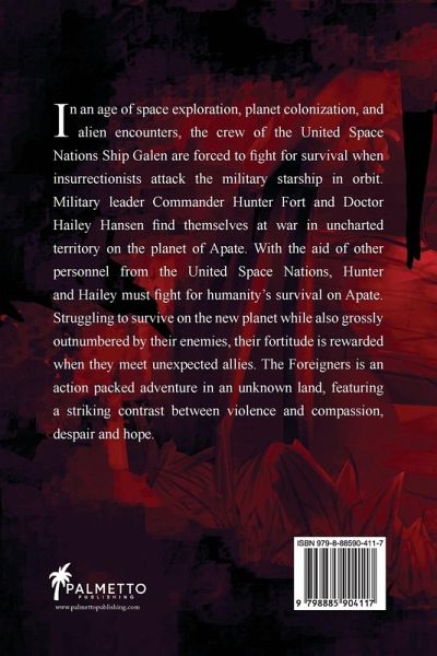 In an age of space exploration, planet colonization, and alien encounters, the crew of the United Space Nations Ship Galen are forced to fight for survival when insurrectionists attack the military starship in orbit. Military leader Commander Hunter Fort and Doctor Hailey Hansen find themselves at war in uncharted territory on the planet of Apate. With the aid of other personnel from the United Space Nations, Hunter and Hailey must fight for humanity's survival on Apate. Struggling to survive on the new planet while also grossly outnumbered by their enemies, their fortitude is rewarded when they meet unexpected allies. The Foreigners is an action packed adventure in an unknown land, featuring a striking contrast between violence and compassion, despair and hope.