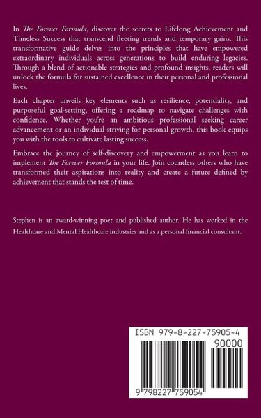 In The Forever Formula, discover the secrets to Lifelong Achievement and Timeless Success that transcend fleeting trends and temporary gains. This transformative guide delves into the principles that have empowered extraordinary individuals across generations to build enduring legacies. Through a blend of actionable strategies and profound insights, readers will unlock the formula for sustained excellence in their personal and professional lives. Each chapter unveils key elements such as resilience, potentiality, and purposeful goal-setting, offering a roadmap to navigate challenges with confidence. Whether you're an ambitious professional seeking career advancement or an individual striving for personal growth, this book equips you with the tools to cultivate lasting success. Embrace the journey of self-discovery and empowerment as you learn to implement The Forever Formula in your life. Join countless others who have transformed their aspirations into reality and create a future defined by achievement that stands the test of time.