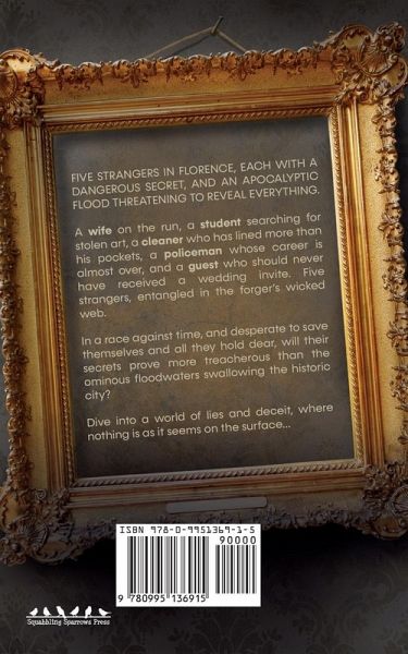 FIVE STRANGERS IN FLORENCE, EACH WITH A DANGEROUS SECRET. AND AN APOCALYPTIC FLOOD THREATENING TO REVEAL EVERYTHING. A wife on the run, a student searching for stolen art, a cleaner who has lined more than his pockets, a policeman whose career is almost over, and a guest who should never have received a wedding invite. Five strangers, entangled in the forger's wicked web. In a race against time, and desperate to save themselves and all they hold dear, will their secrets prove more treacherous than the ominous floodwaters swallowing the historic city? Dive into a world of lies and deceit, where nothing is as it seems on the surface... Set in Florence, Italy, in 1966, the story takes place over three days, amidst the worst flooding in Florence's history.