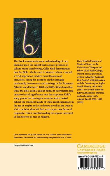 This book revolutionises our understanding of race. Building upon the insight that races are products of culture rather than biology, Colin Kidd demonstrates that the Bible - the key text in Western culture - has left a vivid imprint on modern racial theories and prejudices. Fixing his attention on the changing relationship between race and theology in the Protestant Atlantic world between 1600 and 2000 Kidd shows that, while the Bible itself is colour-blind, its interpreters have imported racial significance into the scriptures. Kidd's study probes the theological anxieties which lurked behind the confident facade of of white racial supremacy in the age of empire and race slavery, as well as the ways in which racialist ideas left their mark upon new forms of religiosity. This is essential reading for anyone interested in the histories of race or religion.