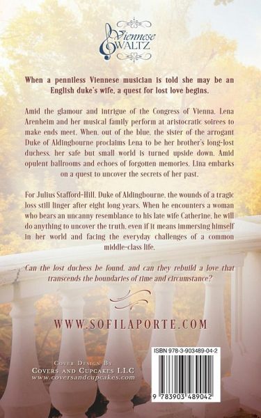 When a penniless Viennese musician is told she may be an English duke's wife, a quest for lost love begins. Amid the glamour and intrigue of the Congress of Vienna, Lena Arenheim and her musical family perform at aristocratic soirees to make ends meet. When, out of the blue, the sister of the arrogant Duke of Aldingbourne proclaims Lena to be her brother's long-lost duchess, her safe but small world is turned upside down. Amid opulent ballrooms and echoes of forgotten memories, Lina embarks on a quest to uncover the secrets of her past. For Julius Stafford-Hill, Duke of Aldingbourne, the wounds of a tragic loss still linger after eight long years. When he encounters a woman who bears an uncanny resemblance to his late wife Catherine, he will do anything to uncover the truth, even if it means immersing himself in her world and facing the everyday challenges of a common middle-class life. Can the lost duchess be found, and can they rebuild a love that transcends the boundaries of time and circumstance?