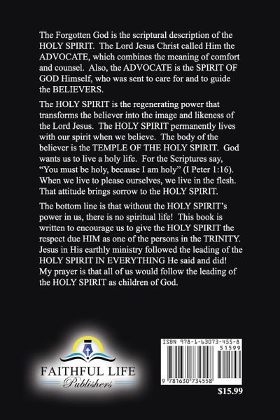 This book is dedicated to the HOLY SPIRIT. The HOLY SPIRIT drew me to my Lord and Savior, Jesus Christ. The HOLY SPIRIT is the one who gave me a new life. I was born again by the HOLY SPIRIT to a new spiritual life. When I believed in Christ, the Father, who chose me, sent me the HOLY SPIRIT He promised long ago. As a child of God, the Power of the HOLY SPIRIT is changing me into the image and likeness of Jesus Christ. The HOLY SPIRIT is "the guarantee that God will give me an inheritance because I am His OWN adopted child. As my body decays daily, the HOLY SPIRIT renews my strength every morning. Also, the HOLY SPIRIT will raise my body as He raised Christ from the dead. I know God's love is in me because the HOLY SPIRIT fills my heart with God's love!! Proceeds from this book will be given to missions to spread the Good News of the Gospel to the world.