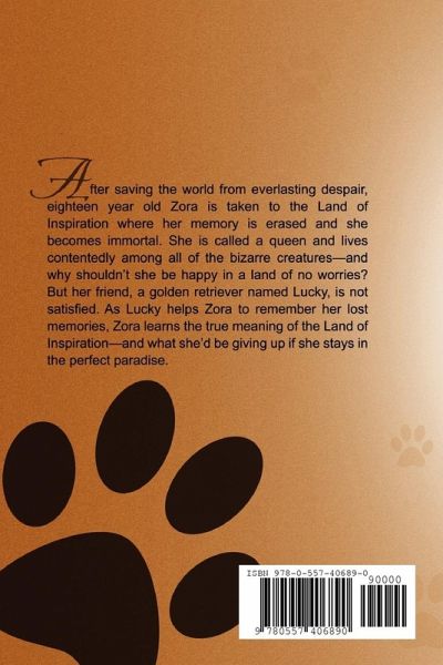 After saving the world from everlasting despair, eighteen year old Zora is taken to the Land of Inspiration where her memory is erased and she becomes immortal. She is called a queen and lives contentedly among all of the bizarre creatures and why shouldn't she be happy in a land of no worries? But her friend, a golden retriever named Lucky, is not satisfied. As Lucky helps Zora to remember her lost memories, Zora learns the true meaning of the Land of Inspiration and what she'd be giving up if she stays in the perfect paradise. A book of choosing between love and paradise.