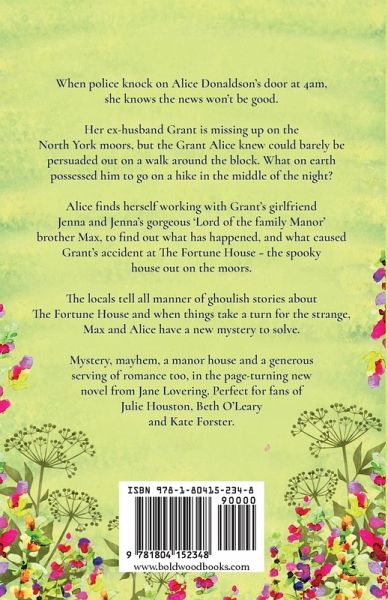 Mystery, mayhem, a manor house and a generous serving of romance... When police knock on Alice Donaldson's door at 4am, she knows the news won't be good. There's been an accident involving her ex-husband Grant, and as his existing next of kin, they need her help. Grant is missing up on the North York moors, but the Grant Alice knew could barely be persuaded out on a walk around the block. What on earth possessed him to go on a hike in the middle of the night? Alice soon finds herself working with Grant's girlfriend Jenna and Jenna's gorgeous 'Lord of the family Manor' brother Max, to find out what has happened, and what caused Grant's accident at The Fortune House - the spooky house out on the moors. The locals tell all manner of ghoulish stories about The Fortune House, which Alice is not minded to listen to. But before long, things take a turn for the strange and Max and Alice have a new mystery to solve. While all the while Alice can't help hoping she might meet the requirements to be Max's 'Lady of the Manor' at his country pile, Hatherleigh Hall. Mystery, mayhem, a manor house and a generous serving of romance too, in the page-turning new novel from Jane Lovering. Perfect for fans of Julie Houston, Beth O'Leary and Kate Forster Praise for Jane Lovering: 'A funny, warm-hearted read, filled with characters you'll love.' Matt Dunn on A Country Escape What readers are saying about Jane Lovering: 'Jane Lovering knows exactly how to write the perfect story. Her novels cover a multitude of subjects, some a little more difficult than others, but all are sensitively done with the most perfect endings. 'Jane Lovering has that ability to choose exactly the right words and images to make you laugh, with a wonderful touch of the ridiculous, then moving seamlessly to a scene of such poignancy that it catches your breath.' 'Fall in love with reading all over again with this cracking tale from Jane Lovering. An excellent reminder, if one is needed, of the absolute pleasure of losing yourself in a good book.'