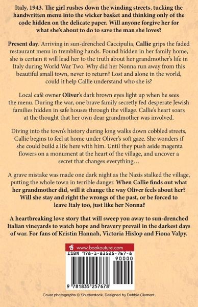 Italy, 1943. The girl rushes down the winding streets, tucking the handwritten menu into the wicker basket and thinking only of the code hidden on the delicate paper. Will anyone forgive her for what she's about to do to save the man she loves? Present day. Arriving in sun-drenched Caccipulia, Callie grips the faded restaurant menu in trembling hands. Found hidden in her family home, she is certain it will lead her to the truth about her grandmother's life in Italy during World War Two. Why did her Nonna run away from this beautiful small town, never to return? Lost and alone in the world, could it help Callie understand who she is? Local café owner Oliver'sdark brown eyes light up when he sees the menu. During the war, one brave family secretly fed desperate Jewish families hidden in safe houses through the village. Callie's heart soars at the thought that her own dear grandmother was involved. Diving into the town's history during long walks down cobbled streets, Callie begins to feel at home under Oliver's soft gaze. She wonders if she could build a life here with him. Until they push aside magenta flowers on a monument at the heart of the village, and uncover a secret that changes everything... A grave mistake was made one dark night as the Nazis stalked the village, putting the whole town in terrible danger. When Callie finds out what her grandmother did, will it change the way Oliver feels about her? Will she stay and right the wrongs of the past, or be forced to leave Italy too, just like her Nonna? A heartbreaking love story that will sweep you away to sun-drenched Italian vineyards to watch hope and bravery prevail in the darkest days of war. For fans of Kristin Hannah, Victoria Hislop and Fiona Valpy. What readers are saying about Barbara Josselsohn: "Totally enchanting. I was immediately under the spell of the characters, it's gorgeous setting and the fast-paced plot... will capture your heart." Goodreads reviewer, ⭐⭐⭐⭐⭐ "The epitome of enchanting... phenomenal... magic... I cannot recommend it enough. I even stopped reading halfway through to check to see if there would be more in the series." Goodreads reviewer, ⭐⭐⭐⭐⭐