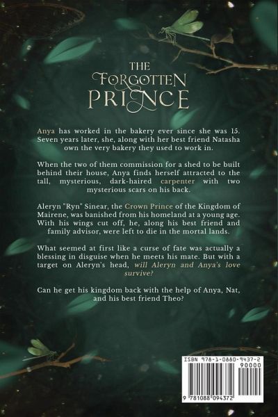Anya has worked in the bakery ever since she was fifteen. Seven years later, she, along with her best friend Natasha own the very bakery they used to work in. When the two of them commission for a shed to be built behind their house, Anya finds herself attracted to the tall, mysterious, dark-haired carpenter with two mysterious scars traveling down his back. Aleryn "Ryn" Sinear, the Crown Prince of the Kingdom of Mairene, was banished from his homeland at a young age. With his wings cut off, he, along his best friend and family advisor, were left to die in the mortal lands. What seemed at first like a curse of fate was actually a blessing in disguise when he meets his mate. But with a target on Aleryn's head, will Aleryn and Anya's love survive? Can he get his kingdom back with the help of Anya, Nat, and his best friend Theo?