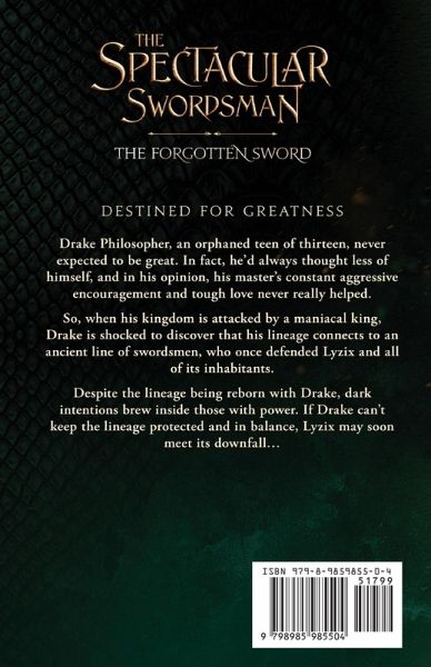 Drake is thrown into a whirlwind of adventure when undergoing a life-changing experience and discovery. Drake Philosopher had been living an ordinary life on the continent of Lyzix, until he was driven out of his home kingdom and separated from his master by the invasion of a power-hungry king. Accompanied only by his best friend Jerome, much of Drake's hope had vanished. Yet after meeting a few newfound friends, Drake discovers his connection to a lineage of ancient swordsmen created to defend Lyzix, leaving his future more uncertain than ever. Determined to retake his kingdom and explore more of his ancestry, Drake uncovers information that alters the understanding of his swordsmanship role. Now faced with numerous obstacles and limited time, Drake must step into the strange history of The Spectacular Swordsmen line in order to keep Lyzix in balance; otherwise, the continent may soon meet its downfall.