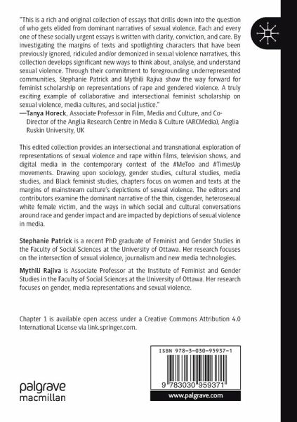 This edited collection provides an intersectional and transnational exploration of representations of sexual violence and rape within films, television shows, and digital media in the contemporary context of the #MeToo and #TimesUp movements. Drawing upon sociology, gender studies, cultural studies, media studies, and Black feminist studies, chapters focus on women and texts at the margins of mainstream culture's depictions of sexual violence. The editors and contributors examine the dominant narrative of the thin, cisgender, heterosexual white female victim, and the ways in which social and cultural conversations around race and gender impact and are impacted by depictions of sexual violence in media.