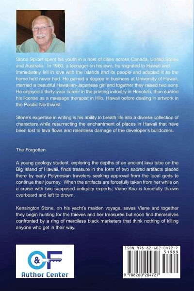 A young geology student, exploring the depths of an ancient lava tube on the Big Island of Hawaii, finds treasure in the form of two sacred artifacts placed there by early Polynesian travels seeking approval from the local gods to continue their journey. When the artifacts are forcefully taken from her while on a cruise with two supposed antiquity experts, Viane Koa is forcefully thrown overboard and left to drown. Kensington Stone, on his yacht's maiden voyage, saves Viane and together they begin hunting for the thieves and her treasures but soon find themselves confronted by a ring of merciless black marketers that think nothing of killing anyone who get in their way. This book, one of the three must-read novels of author Stone Spicer, takes you to a unique adventure and thrill layden in the beautiful island paradise of Hawaii. In this book, the beautiful scenic island becomes the setting of a one-of-a-kind mystic adventure filled with thrill, action, and breathtaking adventures.