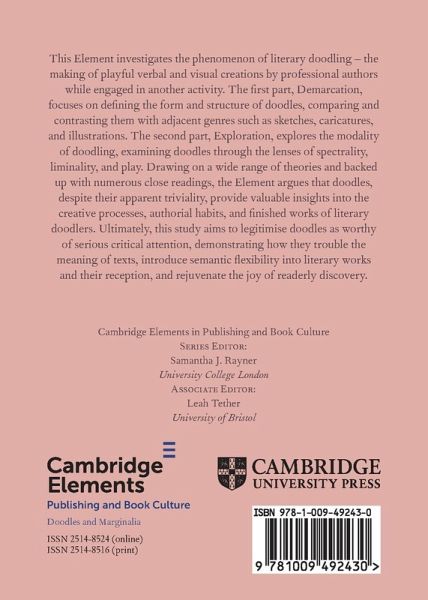 This Element investigates the phenomenon of literary doodlingâ the making of playful verbal and visual creations by professional authors while engaged in another activity. It argues that doodles, despite their apparent triviality, provide valuable insights into the creative processes, authorial habits, and finished works of literary doodlers.