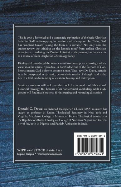 This is both a historical and a systematic exploration of the basic Christian belief in God's self-emptying in creation and redemption. In Christ, God has ""emptied himself, taking the form of a servant."" Not only does the author review the thinking on the kenotic motif from earliest Christian times (even antedating the Pauline Epistles) to the present, but he views it as a source of fresh insight for Christology today. Kierkegaard introduced the kenotic motif to contemporary theology, which views it as the ultimate paradox. In Barth's doctrine of the freedom of God, kenosis means God is free to become a man. Thus, says Dr. Dawe, kenosis is to be interpreted in dynamic, personalistic modes of thought and is the key to a fresh understanding of creation, history, and redemption. Seminary students will welcome this book for its wealth of biblical and historical theology. But because of its nontechnical vocabulary, adult study groups will find much material for interesting and rewarding discussion