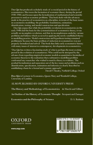 Duo Qin examines the history of econometrics from 1930 to 1960 in terms of the basic issues in econometric modelling: the probability foundations, estimation, identification, testing and model construction, and specification. She specifically argues that the probability revolution of the 1940s which formed the foundation for econometric theory was an incomplete revolution. She asserts that the incompleteness was the basis for the problems and failures which occurred in applying the newly-established theory to modelling practice. In linking early econometric history with many issues of interest to contemporary developments in econometrics, Qin provides an engaging work describing a previously undocumented period in the history of economics.